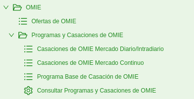 - Programas y Casaciones de OMIE: En este submenú se pueden encontrar las siguientes herramientas: