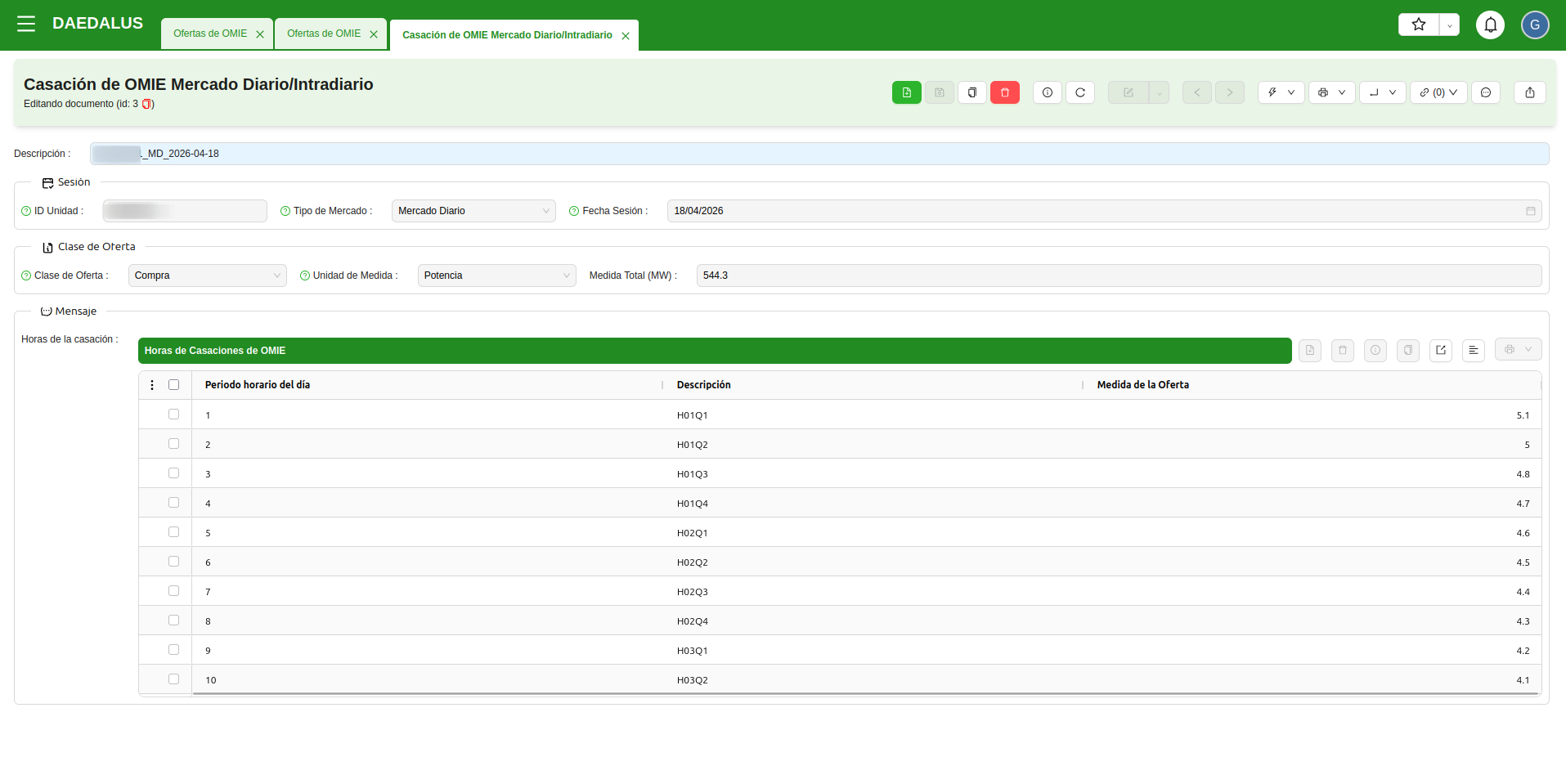 Ofertas para el Mercado Intradiario (MI)